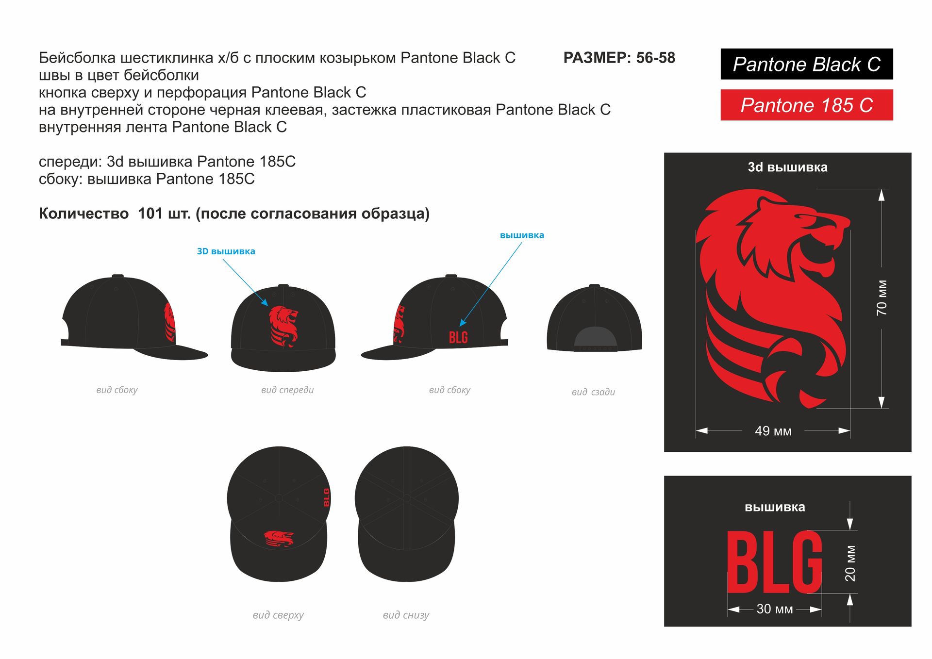 | Front Panel | 3D Embroidery |